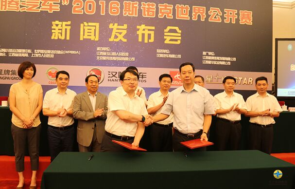 图5 玉山县县委副书记、县长徐树斌与北京星伟体育用品公司董事长甘连童签署2016赛事合作协议 此次斯诺克世界公开赛由北京星牌集团旗下的北京星伟体育用品有限公司与江西省玉山市人民政府共同承办。在本次发布会上,玉山政府与星伟体育用品公司签署 2016赛事合作协议。目前,北京星牌集团以体育、地产、健康为核心,积极拓展文化娱乐、旅游度假、金融投资、高等教育等多领域业务。 此次发布会得到了数十家媒体的高度关注。 |