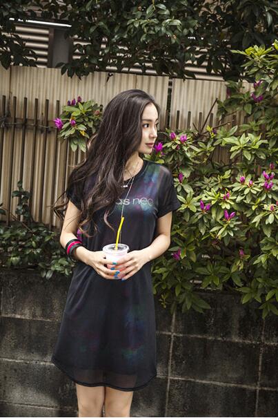 女款T恤和连衣裙的设计灵感同样来自于魅力的南美奥运。带有大面积金刚鹦鹉羽毛的印花连身裙加上外罩的一层网纱,朦胧美感十足,也更显女性风情。薄薄的网纱与若隐若现的印花图案映衬出女性的性感抚媚,修身的版型凸显姑娘们完美的身材。