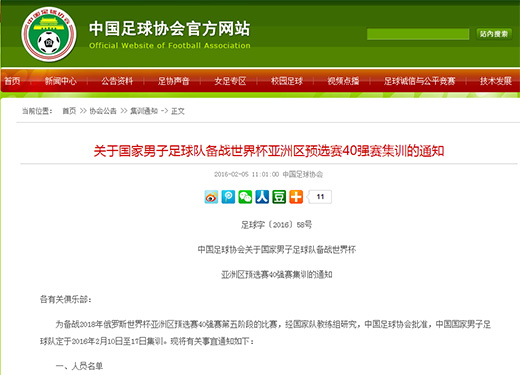 人民网2月5日电 (温静)北京时间2月5日,中国足协在官网上发布了新一期集训名单。现效力于荷兰维特斯的小将张玉宁和冬窗转会加盟恒大的徐新等新人均是首次入选国足,而广州恒大的两位中场大将郑智、黄博文和门将曾诚则无缘本次集训大名单,郜林回归。