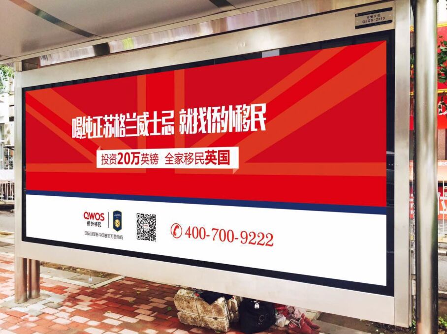 侨外移民现场广告 自从侨外移民宣布赞助2016国际冠军杯中国赛之后,侨外移民一系列围绕移民英国的市场活动相继启动,赢得了较多曝光量!发起的“XXX,就找侨外”事件在网络引发热议,甚至配合宣传投放了很多无厘头的户外广告:“想去英国街头看小鲜肉,就找侨外移民”,“去曼彻斯特约会伊布,就找侨外移民”,“喝纯正苏格兰威士忌,就找侨外移民”……出现在公司楼下、电梯里、公交站地铁站。除了朗朗上口的语感,文案套路也是相当深刻,不仅在赛场引起反响,大量海报也被不少人当街刷屏,号称史上第一个打破移民形象和第一个吃体育赛事螃蟹的品牌。