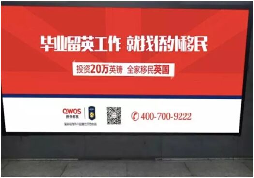 侨外移民现场广告 同时侨外移民一系列围绕移民英国线下广告也相继投放,获得了较多曝光量,发起的“XXX,就找侨外”事件在网络引发热议,甚至配合宣传投放了很多无厘头的户外广告:“想去英国街头看小鲜肉,就找侨外移民”,“去曼彻斯特约会伊布,就找侨外移民”,“喝纯正苏格兰威士忌,就找侨外移民”……出现在公司楼下、电梯里、公交站地铁站。除了朗朗上口的语感,文案套路也是相当深刻,不仅在赛场引起反响,大量海报也被不少人当街刷屏。
