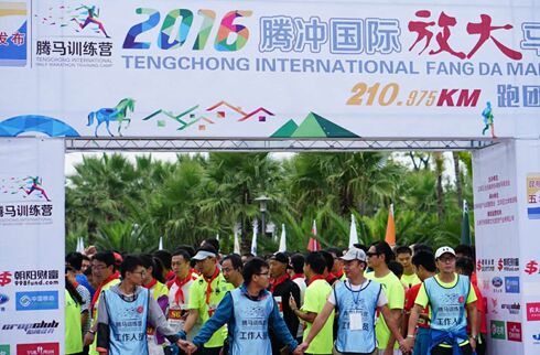作为腾冲国际半程马拉松的前置系列赛,2016腾冲国际放大马拉松跑团挑战赛以210公里的超大里程而闻名。在2016腾冲国际放大马拉松昆明站,云南全省数百位马拉松爱好者们纷纷挑战这项“不可能完成的任务”,全国最大的运动社交平台咕咚作为唯一线上跑团挑战渠道,向全国咕咚跑团发出号召,北京、上海、广州、苏州、深圳、青岛等城市的156个跑团、超过3000人在全国各地,以团队跑的形式,向腾冲国际半程马拉松致敬。