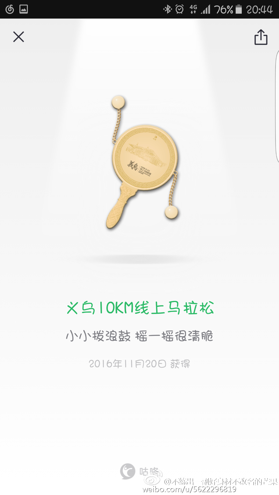 马拉松是特殊的体育项目,除了包含竞技体育的竞争精神,更是全民参与运动的最典型代表。你是否参与其中、乐在其中,是否把挑战自己变成习惯,才是每一个跑者所看重的,也正因如此,咕咚跑友才会每次都对心中的里程提出更高的要求,对线上马拉松的奖牌也看得特别重,这是对“自己战胜自己”的最好褒奖。咕咚义乌线上马拉松的奖牌和主题当中的“童年如梦”自然贴近,金属材质的拨浪鼓造型,工艺细腻、花纹精美;整体古铜色则代表了义乌这座历史名城的自然积淀。让跑者对“山河如画”有了更高的期待值。 咕咚举办线上马拉松赛事已经超过三年,从当初的摸索到如今的兴盛,带给跑友的除了坚持的成就感,还能在奔跑过程中,阅读自己所在的城市。例如上海用户@阿廖沙4007就把每一场线上马拉松安排在不同城区,一年下来,他跑遍了上海的大街小巷,对“魔都”也有了更多的了解。另外,社交网络的发达、咕咚视频直播的完善,能让跑友成为主播,一面跑,一面带着全国各地的朋友共同欣赏自己城市的独特风景,俗称“带逛”,也让不少用户产生了旅游的兴趣。