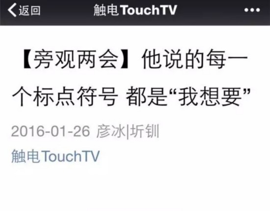两会对于普通老百姓来说,又高又大又上,怎样把两会信息、政府工作报告报道得接地气,是新媒体的记者编辑们苦苦思寻的问题,也是广东台报道两会的宗旨。为此,电视新闻中心全媒体部和时政部联手,推出【旁观两会】新媒体产品。在每篇文章开头,记者录制了两分钟内的小音频,俗称“讲个段子”。用时下比较流行的逗唱风格录音,评点两会热点,给人惊喜,又不失清新。 比如首篇推送《他说的每一个标点符号都是“我想要”》,清新的文风同时运用口语押韵,对《政府工作报告》中的热词、新词逐一解读。