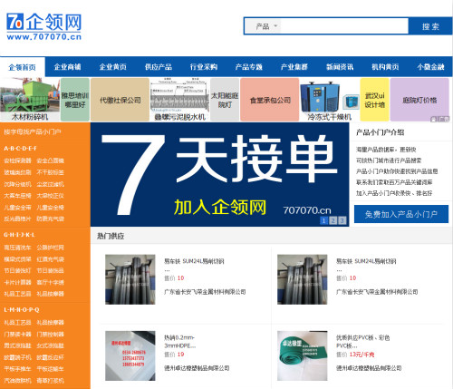 企领网( www.707070.cn)是聚合网络公益的b2b电子商务平台,我们能让你在从事电子商务的同时参与网络公益,已有300多万中小企业入驻本网。企业及供应信息按行业分类展现。