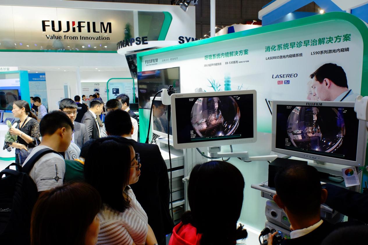 2017年5月15日,第77届中国国际医疗器械(春季)博览会(CMEF)在上海国家会展中心开始为期4天的展览。 现场,富士胶片(中国)投资有限公司医疗事业携旗下新锐医疗产品及解决方案亮相在此次春季会现场。富士胶片展台凝聚综合医学影像技术,通过 “数字X射线摄影系统”、“内窥镜”、“超声诊断系统”等多元化医疗器材的实机展示和现场演示,以及“医用IT” 综合医疗影像诊断解决方案的全方位呈现,吸引了众多观众驻足。