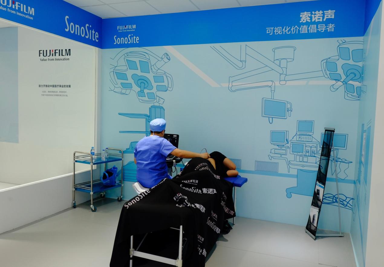 三维影像后处理系统SYNAPSE 3D 场景还原 深化应用 此次展会上,富士胶片索诺声超声除了带来全线产品提供实机试用,更首次在展台内打造临床超声场景区域,现场还原临床超声应用场景,帮助观众加深对POC超声应用的理解。专业的临床人员,带领观众身临其境感受Point-of-Care可视化技术的日常应用。