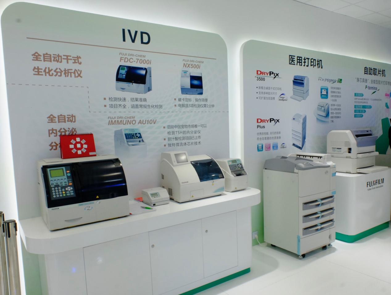 索诺声超声临床超声场景区域 多种方案 全面支持 富士胶片医疗事业多种医用影像解决方案也悉数登场, IVD体外诊断设备、医用打印机系列产品、P-temina自助取片机等产品始终保持高水准并不断精益求精,先进而完善的产品线为医师提供全方位的支持。