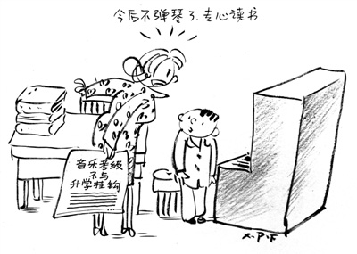 漫画 徐鹏飞 实现非功利的音乐教育,可通过学生合唱团、乐队等低成本的音乐普及形式,让更多的孩子感受到音乐之美,而不是让音乐成为琴童或“尖子生”等少数人的专属品 2015年,是我国取消体育、艺术等文体特长生考学加分的第一年。也是由此开始,音乐考级不再与升学挂钩。一时间,人们开始思忖:音乐的社会考级算是考到头了,那么,我们的音乐教育是否还要继续,如何继续? 音乐考级本是舶来品,源自西方音乐社会教育体系,其宗旨与就学升学毫无关联,只是对音乐业余学习者的成绩作阶段性的考察与评定。1990年,中国音乐家协会设置了考级委员会,开始在全国范围内推行音乐考级。随后,中央音乐学院与其并驾齐驱,二者共同形成国内音乐(社会)考级两大体系。此后20多年间,音乐考级不仅越来越“热”,而且与孩子们的升学挂上了钩。 一时间,音乐艺术特长成为未成年人就学升学的重要砝码:最初是以“级数”论高低相应加分,接着各个学校自招特长生,并提前予以加试提分。音乐考级变味了、走调了,越来越偏向功利性的目标。许多对音乐艺术既无兴趣又无天分的孩子,因为父母追风赶潮,因为父母以就学升学为目标“高压强迫”,不得不拿起了琴、练起了唱,失去了童年应有的欢乐,更无从感受音乐艺术的神圣与美好。从“教”与“学”两个方面来说,音乐都被异化为不断娴熟的技法,艺术的本质被抽离。 如今,音乐考级与升学之间的关联被取消,为中国人数众多的琴童松了绑,也有助于实现艺术教育的公平公正。多年来,音乐业余考级的现象主要集中在经济发达、文化繁荣的大中城市。而对于贫困地区的孩子们来说,他们入读的学校恐怕连教学大纲规定的音乐课程,都因为教学条件的有限而形同虚设,何谈业余时间的音乐学习?当音乐考级不再具备左右升学之路的力量时,我们现有的音乐教育资源才有可能为更多人所分享。 具体来说,如何实现这种非功利的音乐教育?世界上许多发达国家在这个问题上有一个共性,即普遍重视集体合作的音乐样式。在普通中小学校开设的音乐课程中,他们不那么热衷于鼓励人群中的“少数派”,即琴童这一群体参加音乐考级,而是将重点放在指导大多数学生参与到学校室内乐队、管弦乐队、重唱、合唱等音乐社团中。正是通过这种低成本的音乐普及形式,更多的孩子得以感受到音乐之美,并实际参与到音乐的创造过程中。 我国大中城市虽有类似做法,但其根本区别在于,我们的中小学生乐队、合唱队仍然只对经过精心选拔的“尖子生”开放,其着眼点不是惠及学生中的大多数。有幸进入学校乐队、合唱队的孩子们可以登上舞台正式演出或者赴国外交流,而绝大部分学生是被排斥在外、是被不同程度地边缘化了的。音乐教育对于贫困地区的未成年人来说,更是望尘莫及。 如何改善这一现状?有条件的普通中小学校,应尽可能多地组织学生乐队与合唱队,并让这种形式正式地进入教学体系,使之成为音乐教育常规化、制度化、有序化的重要措施。经济欠发达地区的学校或许难以拥有一支完整的乐队建制,但是他们依然拥有世界上最为“价廉物美”的乐器——孩子天生的歌喉。当学校将合唱训练课纳入日常的音乐教学,相信会有更多的孩子爱上音乐、爱上音乐背后这个广大的世界。经济条件有限的地区,往往拥有多样化的民间文艺。发挥地域文化优势,从当地的民族音乐、民间音乐中汲取养分,也是当地中小学校音乐教育可以大有作为的资源与方向。 音乐对一个人的影响是潜移默化的。此时,许多城市新一轮的音乐考级已经开始,相信真正热爱音乐的孩子们,自然能够继续走在有音乐相伴的道路上。而对于大多数孩子来说,伴随着考级与考学之间“生物链”的断开,与艺术无关的喧嚣的杂音正在消散,感受音乐之美的机会将越来越多,我们的音乐教育也将逐渐复归美育的本质。 |