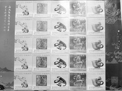 原标题:澳门发行猴年邮票 图案将猴的形态与五行结合(图)