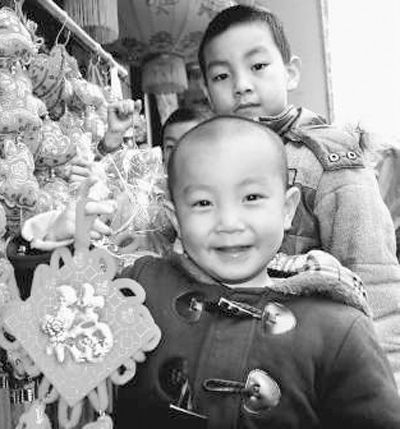 春节临近,在江西省遂川县城大街上,小朋友高兴地拿着中国结。人民视觉