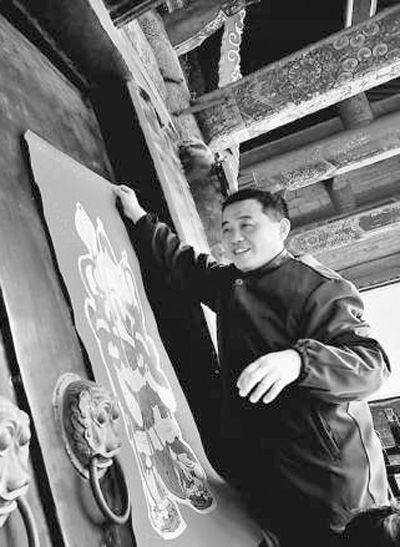 农历大年三十,山东曲阜,人们在贴春联、贴门神。人民视觉