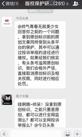 上个月,头条号平台上线了一项新功能:「原创保护」功能。在内容创业高歌猛进的当下,这一项真正有利于构建良性内容生态的实效功能显得毫不起眼。 事实上,今年以来,内容战场烽烟四起,各平台忙着跑马圈地,吸收海量内容,不亦乐乎···然而,却几乎罕有平台真正重视内容的版权问题。平台内抄袭或跨平台抄袭,已是自媒体生态里的常见现象,原创内容得不到保护,成为了内容生产者的一块心病。 那么,平台能否为原创作者提供足够的保护呢?前些天,在一个「版权答疑周」活动群里,今日头条的一名法务人员透露了头条号在内容版权上的处理办法,让人眼前一亮。现将核心要点梳理如下: 头条号上的内容,主要来源包括: 1. 合作媒体机构:如新华社、新京报、澎湃新闻等; 2.入驻自媒体:商务范、一条、papi酱等; 就是说,头条号平台作为内容分发机构并不生产内容,而只是汇集传统媒体和自媒体的内容进行分发。据官方数据,目前已有 20 万头条号入驻,是仅次于微信公众号的第二大内容生态。 那对于自媒体抄袭问题,头条号又是如何处理的呢? 1. 头条号抄袭头条号:系统可自动识别,抄袭者不会获得推荐量,原创作者还可在后台一键查删抄袭文章; 2. 其他平台作者抄袭头条号:签约了原创保护功能的头条号作者,可授权第三方维权机构维权骑士代理维权,可在文章时效内完成删文,并可能获得索赔; 3. 头条号作者抄袭其他平台作者:收到原文作者举报后,头条号工作人员平均会在一个小时核实并处理侵权文章,并对抄袭者进行处罚;