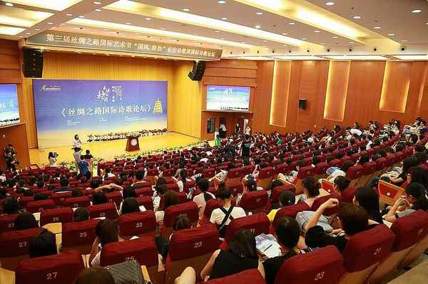 《国风·雅韵 长安诗歌周》开幕式现场 丝绸之路国际艺术节是我国首个有关丝绸之路的常设国家级艺术节,同时也是中央批准的唯一可以设置国家级奖项的综合性国际艺术节。艺术节由国家文化部和陕西省人民政府共同主办、陕西省文化厅承办,每年举办一届,永久落户陕西。 中国作家协会书记处书记、副主席吉狄马加,陕西省文化项目领导小组组长、第五届陕西省作家协会副主席白阿莹,原陕西省人大常委会副主任、省慈善协会会长刘维隆,陕西省政协文教委主任、陕西文学基金会理事长、长安诗歌周组委会主任雷涛,陕西省文化厅党组书记明平英,原陕西省政府副秘书长、陕西省诗词学会会长孟建国,中国作家协会诗歌委员会主任叶延滨,福建省文联副主席、当代著名诗人、朦胧派诗创始人舒婷,德国世界著名汉学家顾彬,英国中世纪文学博士罗宾·吉尔班克,著名诗歌评论家陈仲义,陕西省政协常委、致公党陕西省委会副主委西安培华学院理事长姜波,《诗选刊》杂志社社长、国家一级作家、著名诗人简明,陕西省作协副主席、著名诗人阎安,陕西省作协副主席朱鸿,陕西师范大学新闻与传播学院院长、著名评论家李震,《诗歌月刊》杂志社主任、著名诗人黄玲君,长安诗歌周组委会副主任、陕西省文化厅文艺处处长徐敏,《陕西工人报》社长梁仁义,陕西文学基金会常务副理事长、长安诗歌周组委会副主任、总策划王芳闻,长安诗歌周组委会副主任、西安市作家协会副主席杨莹,长安诗歌周组委会副主任、全国人大代表孙维,《中国诗人》主编安娟英,诗歌春晚总策划、总发起人金辰,以及海内外数百名专家、诗人以及高效学生2000人与会。