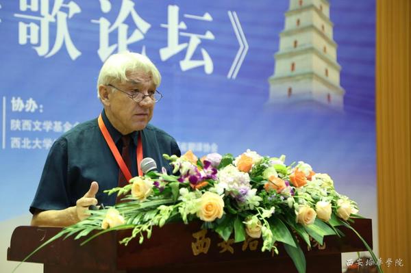 德国著名汉学家、诗评家顾彬在开幕式上讲话 德国著名汉学家、诗评家顾彬也在开幕式上激动地表示:来到西安,我特别感动。这里是丝绸之路的起点,也是中华诗歌的故乡。在《诗经》及秦韵汉赋风气的影响之下,大唐诗歌走向了辉煌。用诗歌建造起了一座人类的精神家园,深深地影响了古代丝绸之路和欧亚文化。