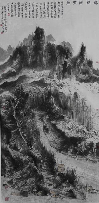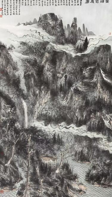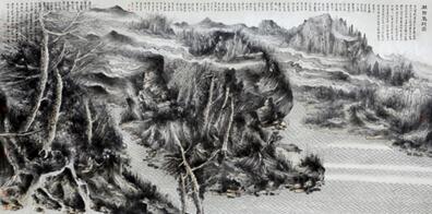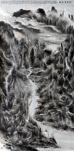 124cmx248cm 于军福作 (文/ 李宝林)山水画是成熟最早的画种之一,也是人类最早的绘画表现形式。从山水画诞生之日起,它所承载的就是物质和精神的交融。艺术家只有注重精神的表现与精神的追求的最大化,也就是精神的纯粹性。在任何艰难困苦的环境中都葆有其追求,才可能有人文精神和独立人格,如果仅依靠技巧而将笔量和精神分割开来,其艺术价值必大打折扣。