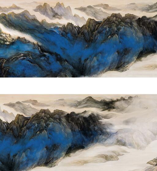 [名家评论] ·邵大箴 大风景,大格局。 《看山要看祖国山》是万鼎绘画历程中最辉煌的一件作品,反映了他艺术创作的新高度,也是我国山水画运用新材质传达传统文化精神、拓展表现语言的崭新成果。他之所以取得如此成绩,充分说明他牢记长安画派一手伸向生活,一手伸向传统的艺术主张,在扎根生活和研究传统的过程中,善于用心领悟,并能融会贯通中西绘画原理,别出心裁地进行创造性的探索。从万鼎现有的成就我们可以预测和期待他未来更为广阔的艺术前景。 ·王镛 “夺得千峰翠色来”是唐代诗人陆龟蒙称赞越窑秘色青瓷的名句,用来形容万鼎的巨幅山水画《看山还看祖国山》也相当贴切。这幅泼彩泼墨的青绿山水呈现出堂堂中华泱泱大国的恢弘气派,浓缩了祖国大好河山的壮丽景色,凝聚着画家热爱祖国的深挚情感,尤其是那种苍翠欲滴、鲜丽厚重的蓝色调,为人民大会堂增添了一道赏心悦目的光彩。 ·尚 辉 中华民族的伟大复兴必然意味着文化艺术的复兴,这可以在当代一些典范性的文艺作品里获得印证。新近在人民大会堂二楼东大厅落壁的由万鼎绘制的中国画《看山还看祖国山》,既是这样一幅以表现日出东方的山水意象来象征祖国日新月异、繁荣昌盛的山水画卷,也是当代中国山水画立足传统、走向现代的黄钟大吕之作。是为我们这个崛起了的中华民族,谱写了一曲彩墨淋漓、荡气回肠的祖国颂。