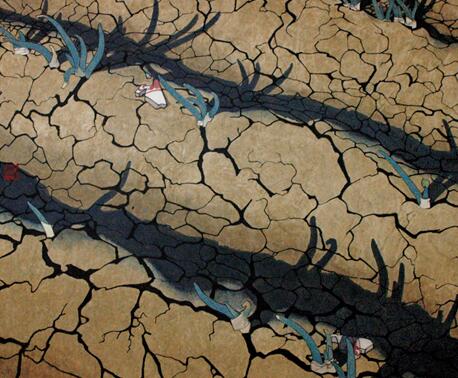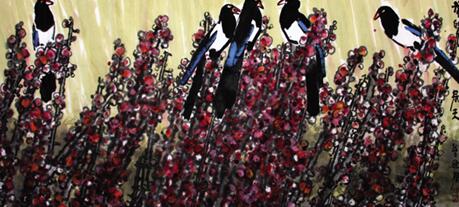 我的春天我的梦 之霜雪妄欺玉骨 素裹难掩红颜 2014年260x266cm 曾迎春的作品,给我最为突出的印象就是具有一种现代性。当然,我们所谓的新并不是没有在传统的脉络上。而曾迎春作品的可贵之处,正在于继承传统的同时具有了一种现代感。特别是她作品中的画面构成尤其大胆,极具当代性,非常注重视觉上的冲击力和张力。而这种视觉的冲击力和张力,也是建立在一种女性含蓄世界的基础之上。但在曾迎春作品中所传达出的内在精神性并不柔弱。 曾迎春在女性画家当中是尤为突出和优秀的。曾迎春作品中的变化也是能寻出她的原理的。我们看曾迎春作品中的黑白灰色调对比也好,还是在画面节奏感上的把握也好,始终像音乐的音符一样有高低、强弱。这样的作品让人在情绪上有了一种跳跃,这种跳跃恰恰也使人感受到一种抒情似的美感。在曾迎春的内心世界里,透露出的是对人生的善良和真诚。如果没有这种善良与真诚作为艺术创作起点和支点,那么作品就容易显得做作。但是她还不止于此,她真诚地对待任何人和事物,真诚地对待艺术。所以她的作品是感人的,也是当代的,也是一种创新的。我认为艺术的发展就应当走这样一条在传统的道路上另辟蹊径,成为曾迎春式的艺术语言和艺术图式。所以我说曾迎春无论是在艺术上,还是做人上都是成功的典范。-----王界山