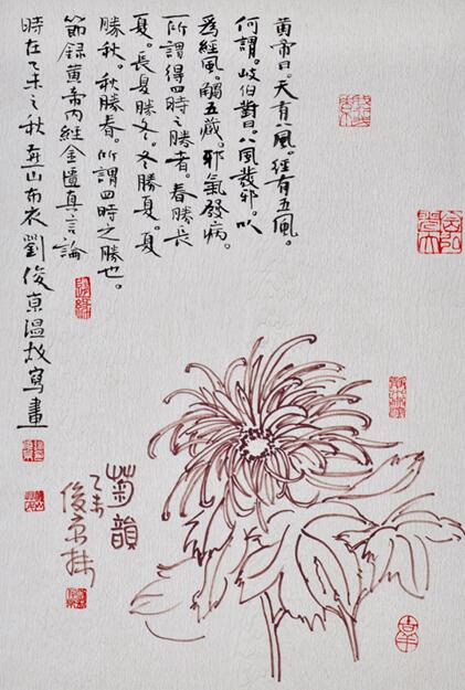 中国四大国粹——京剧、中医、书法、武术,几乎一一被刘俊京收入笔下。作为一名医者,治世人之病痛,研养生之精道;刘俊京爱京剧,其师欧阳中石更是京剧名家,奚派传人之一。以国粹之京剧入书画,他更是能妙笔生花,形神既备,神采兼具。他研修绘画、篆刻、戏曲、音乐、舞蹈、诗词,把一分博学融入书法;研究佛家禅意书法的奥秘,把一分宁静融入书法,使人领略到中华文化的博大精深。