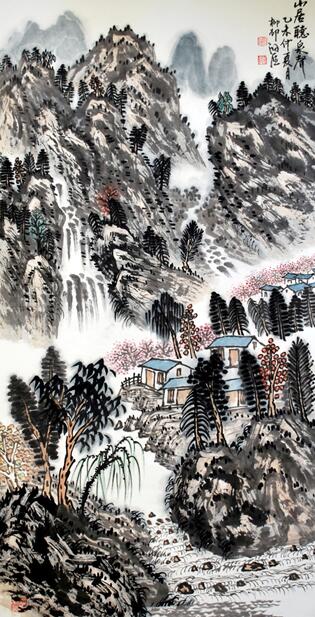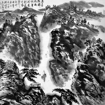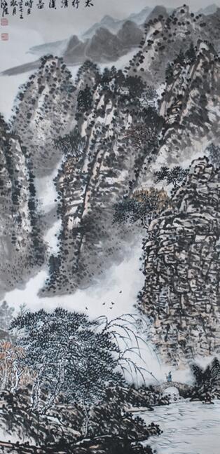 在王鸿雁的山水画中,占主导地位的主要还是一股大气,一种文气,正气和阳刚之气。他的山水画作品就整体而言,可以说既集成了北派山水的雄风,又不拘泥于传统山水的一笔一墨;既得益于传统的血脉,又植根于个人化的主观感受之中。