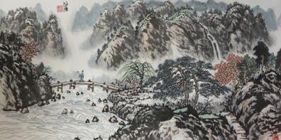 《云游山水间——王鸿雁山水画品赏》 (文/梁子)几年前见过王鸿雁的画,那是他带着画到我书房看的,给我留下了深刻的印象。去年去山东采风,得暇到王鸿雁家中一访,就被他居室的古香古色所感染。当时我就想,他把自己锁定在这样一个传统氛围浓郁的空间之中,仅只是表明他作为一个中国画家对传统艺术的守卫呢,抑或是显示作为收藏家的身份?及至看过他的部分新作之后,我悟到了一层更深的含义:他要回到传统中去,回到这个人类远在的“精神家园”。他要在传统的氛围中重新解读传统,并从传统中寻找新的出发点。