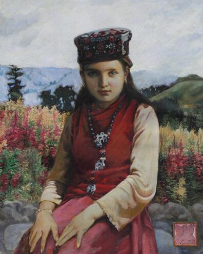 塔吉克姑娘-中华民族·丽人行之41 塔吉克族 为了这套组画,他经常深入中国各地写生、搜集资料。多次往返云贵高原、南海之滨。大江南北、黄河上下,甚至远到台湾阿里山的山脉都留下他的辛劳影子和艰辛的步伐。 “一本书”和“一套画”,集中体现了他的色彩理论与艺术追求。毫无疑问,这是一套既有丰富的民族特色,纯真的艺术情感,高超的艺术魅力的作品,是我们中华民族的油画。没有巨大的精力和决心,没有一定的思想情感根本是做不到这件事的。这也是一笔真正为社会创造的财富,它以独特的绘画艺术的表现形式,真实而又亲切地描写了中华民族——这个伟大民族今日的面貌,讴歌了这个多民族国家的人们勤劳、善良、美丽、智慧的精神和品德。这样的民族不但千年不衰,也必然不可战胜!他们必将团结如一人,走向更加光明的未来!它也是一份珍贵的厚礼献给2008年中国的首次奥运大会。 (作者林鸣岗:旅法画家、香港油画研究会会长)