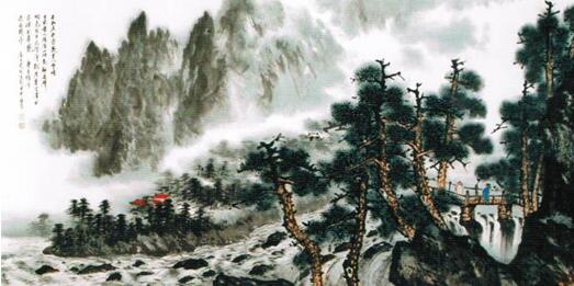 一幅《灵峰秀美图》,展现在观众面前,画面以轻化重、以浓融淡,把九华山壮丽的风光渲染得淋漓尽致,葱茏的山色被流动的水墨融化在千变万化之中,把中国画传统技法难以表现的瞬间自然美感和光的变化效果,奇迹般地重现在宣纸上。周成先生对祖国的大好河山情有独钟,他懂得山水画艺术,不仅要“先师古人”,而且应“外师造化”“搜尽奇峰打草稿”。60多年来,周成怀着对祖国的眷恋,曾踏遍万水千山。他三越泰山、四攀长城、六上黄山、七下太湖,入巴山蜀水,足迹布满华山、秦岭、峨眉山、祁连山、岷山等10多座大山,涉过长江、黄河、渭水、岷江等10多条江河。奇峰异岭的旖旎风光,丰富了周成先生艺术创作的源泉,他为山河写照,从大自然中寻找艺术的真谛。胸藏万壑生机,笔底满纸烟云。他用饱含深情的笔墨,留下一幅幅山水力作。