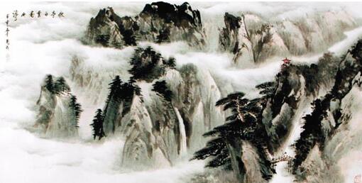 黄山,是中国画取之不尽、用之不竭的源泉。20世纪80年代,周成就开始画黄山景色。20世纪90年代,国画大师刘海粟十上黄山,周成曾应邀陪同,刘海粟大师对周成钟情于国画艺术的精神十分赞赏,在看了他呕心沥血的新作以后,欣然为画展题字。 周成先生的“新泼墨山水画”,无论在水墨的运用、构图的技巧,都有独到之处。特别是表现云气弥漫的山峦,呈现一种满眼青山尽好诗的意境,一种烟雨遍染而不凝的特殊水墨韵味。从而取得刚柔相济、虚实相间、朦胧而清新的视觉效果和独特的艺术风格。