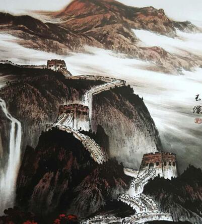 中国传统山水画在现代社会如何延续和发展是中国画界面临的重要课题,上世纪90年代初因受西方现代绘画艺术的影响,中国画界有很多人追求“艺术变革,为艺术而艺术”的创作思潮使艺术与现实脱节。而艺术是要与时代同步共荣的,需要有崇高的道德精神去为社会服务,美化和谐社会,画家所创作的作品在新的社会环境里让人们接纳,是社会的要求,也是画家的责任。在这个新的社会环境下有众多画家发挥出他们的创作激情,满腔热情的用作品赞美新时代,践行社会主义核心价值观,为繁荣新时期的文化做出贡献。这其中玉璞在探索创新中找寻自身和现况的不足,在继承发扬传统的过程中,他遵循“人法地,地法天,天法道,道法自然”的古训深入生活,在生活中扑捉最纯朴的美,用宽宏的胸怀再造自然美并努力借鉴吸收西方绘画艺术之精华融汇贯通。使他的作品新颖大气、有时代感。他是个真正研究学问的艺术家,既有着敦厚的艺术品格、执着的精神和博学才思,又有着扎实的基本功底和艺术修养。经过他艰辛地研究与努力,近几年来他创作出大量的反映时代精神面貌的新作品,这些作品自始至终都打着时代烙印,充满着现实中美好的民族精神面貌,如中南海、人民大会堂收藏的《泰山云海》,中办、外交部收藏和美国大片《地心引力》用做背景画的《长城雄姿》等面貌新颖恢宏、大气磅礴、浑厚壮美、意境深邃,观后让人震撼。又如钓鱼台国宾馆收藏的《春醉苗岭》、曾获中日水墨画大赛金奖的《云南玉龙雪山》、北京市政府收藏的《蛟龙戏海》等作品集天地之精华,聚日月之灵气,极富个性,物我到触手可及,令人神往。