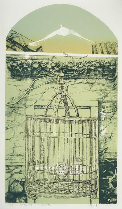 《出笼的鸟》丝网版画 70.5cmX40cm 2003年