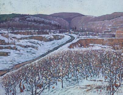 《出栏的马》 丝网版画 50cmX70cm 2004年 《腊月棉田》 油画80cmX100cm 2015年 |