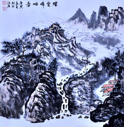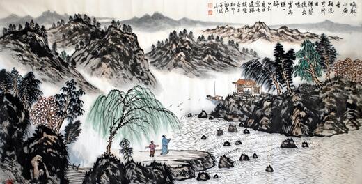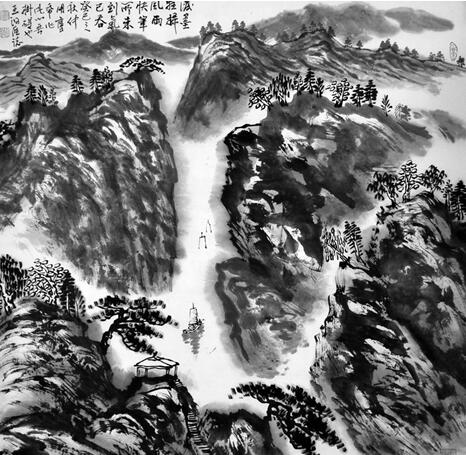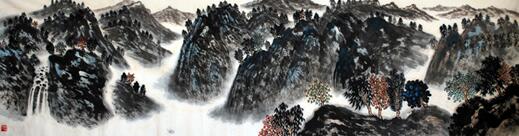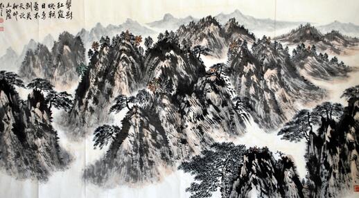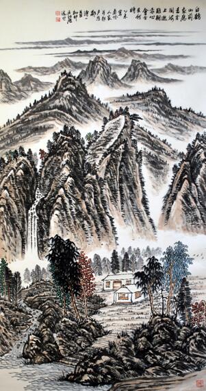 在王鸿雁的山水画中,占主导地位的主要还是一股大气,一种文气,正气和阳刚之气。他的山水画作品就整体而言,可以说既集成了北派山水的雄风,又不拘泥于传统山水的一笔一墨;既得益于传统的血脉,又植根于个人化的主观感受之中。