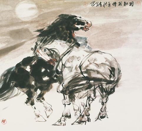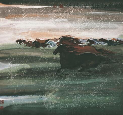 今天的画家,不但要在不同时代挖掘和承传国人意识中根深蒂固的精髓,更重要的是必具娴熟的写意技法,还要在这块艺术的沃土上寻找自己的水墨语言。为了画出不同于古人、前人的马,杨书华追求个性,终于画出了没有确切面目,只有清晰轮廓、骨骼、肌肉在纸面上忽闪着的健康光泽。于是空气中似也飞舞流动着一股活跃的气息。