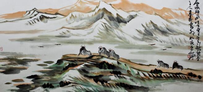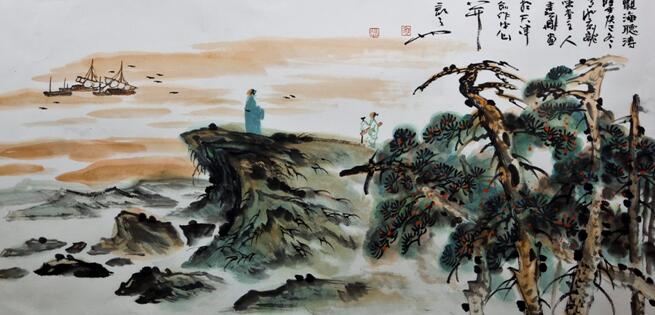 再赏他的画,笔墨浓淡之间隐约透着雄浑、博雅的北方气度。一问,才知是鲁中人,家在泰山脚下的凤城。王建华在孩童时期就展露了绘画的艺术天分。书本上,只要有地方,就涂涂画画,乐此不疲。老师也惊叹:“这孩子画啥像啥,是块学美术的料!”机缘而至,伯乐垂青,16岁那年,王建华被部队特招,做了文艺兵。尽管父母极力反对,但拗不过王建华倔强的坚持,也只好勉强同意。 进入部队,有了更多的自由创作空间和灵感。以部队文化建设、军人生活为题材的作品,被源源不断创作出来,深受部队领导的赏识。1982年,其作品《海魂》,在中国人民解放军二十六集团军举办的“首届长城杯绘画比赛”, 获得金奖。经过部队时期的积淀和历练,王建华陆续顺利考入了鲁迅美院、北京画院。在当时,能进入这两大学府学习深造,对于很多人来说都是极其“奢侈”的梦想。因为,太难考了。绘画这门艺术,单靠刻苦努力,远远还不够。王建华回忆,考北京美院时,上千人报考,最终只有十来个能被录取。 在北京画院,王建华师从国画大师杨延文先生。几年间,系统地学习了中外美术史和美术理论,他开阔了眼界,了解了前辈绘画大师的艺术风范、风格。通过学习传统绘画的技法和美术理论的升华,进一步提高了他的绘画艺术水平。岁月几十载,悠悠笔墨心。从孩童随意涂鸦到如今艺术造诣,王建华的作品形成了独特鲜明的个人风格。 近年来王建华先生的作品,风格愈见纯朴、浑厚,意境和技法都达到了炉火纯青的地步。《天道酬勤》、《西部风情》被国务院办公厅紫光阁收藏。受益于传统文化的熏陶,他把自己与山水融于一体,将山水画注入了现代形态,既有传统,又富有强烈时代气息。由于早年一直研习油画,所以王建华先生善于将西方油画的交点透视还有考虑环境光源运用到画面里。因此他的作品或呈冲相对角的斜线,或呈画面中心为左右对称,或呈曲线延伸。 从作品中能够看出他始终保持着对大自然充满着浓厚的感情,他对一草一木,一事一物都浸透着他的爱。件件作品都透露出纯朴的天真情趣和生动的意境。中国艺术研究院美术学博士吴士新这样点评他的作品:他总能将笔法、墨法、皴法、着色、点苔等不同技巧熟练地交织在一起。山体的披麻、斧劈等皴法和水体的浓墨、焦墨、淡墨等墨法被合理地结合起来,之后施染石青石绿,使得画中山水雄浑刚健而不乏淡雅。他用“蛮荒”和“缥缈”来形容王建华先生的艺术境界。常人很难想像,这种境界在画家王建华手中是如何造化的。这不仅让人勾起了这样一种意境:“野水纵横,乱山荒蔚”。 王建华先生常常怀着一腔痴情登山临水,走遍祖国的大好河山,他在与大自然心心相印的交往中,对景写生表达自己的审美感受。《泰山岩岩》是他的钟意之作。他介绍,自己的山水画创作的成就源于他深入山川,搜集素材,为了加深理解,常常故地重游,数次走入名山峡谷,领略大自然的鬼斧神工,高山流水、青山古木,得山川之灵气,知草木之性情。 采访之际,笔者有幸亲眼见识了王建华先生现场创作《荷塘佳色》,艳荷、游鱼、流水……用笔流畅,构图大气,率性活脱,干净利落。用色不拘一格,粉色的荷花,他大胆用了橙色,却丝毫没有艳俗之气。 与一些画家钟情于现代山水图式有所不同,画家王建华选择了皈依中国传统山水画的道路,在钻研和探索传统中自味其乐,主张“变则其久,通则不乏”。 在王建华先生作品中,你能感受到无限的生机与激荡人心的生命力,无论是巍峨繁茂的崇山峻岭,还是清灵活泼的长河溪流,都能感受到先生那种源于自然的大气雄浑,自然神韵。透过他的作品我们能感受到画家王建华有一颗慈善博大深沉的心;他静默于大自然,参悟于平凡的人和事,把生命的历程化为他内心的创作历程。 在先生作画的最后落款时,我们又领略了先生绝妙的书法。多年来,他对书法与绘画一样研习不辍,形成自己的风格,在题跋中的篆书苍劲老辣、浑厚古拙、内敛雅致,无一轻巧浮华之笔。字字清雅,秀拔耐看,题跋和画风相得益彰,形成完美的统一。 一个画家的品格和内心境界往往决定了一幅字、一幅画的精神力量。什么样的作品都会因其人其艺,因其文化底蕴和艺术情操而展现出自己独特的魅力。正如王建华先生所说: “不学书,无以画”。布布 人物简介: 王建华,字海旭,号乾龙、天朗。先后毕业于鲁迅美院、北京画院中国画高级创作班,师从杨延文先生。现为联合国教科文组织专家成员、中国书画科学研究院院长、国家一级美术师、同济大学艺术顾问、中国书协高级考官、中国田园画会副主席、文化部中国水墨研究院艺术委员会主任委员、北京华夏名人艺术书画院执行院长兼艺委会主任、中国民协会员、中国美协会员、中国散文学会会员、中国民俗摄影家协会会员、北京市丰台区美术家协会副主席。 1982年,参加中国人民解放军二十六集团军举办的“首届长城杯绘画比赛”, 作品《海魂》获金奖。 1987年,参加文化部举办的“泰山杯中国画展”,作品《西山雨后》获铜奖。 1991年,参加中国美协、中国书画报社“北京90年代第一春全国绘画比赛”,作品《云律图》获优秀奖。 1991年,参加中国书画研究会组织的“全国百名画家百米长卷《民族之魂》和《炎黄之母》的创作。 1999年,参加中国美协、中国金融报社联合举办的“银鹰杯书