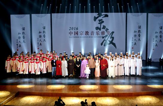 香霭馥馥,济济一堂 雅集汇集佛教、道教、儒教、伊斯兰教、基督教等团体及艺术家们的精彩节目,涵括法鼓、唱诵、乐器合奏、诵读、赞美诗等多种音乐形式。汉传佛教曲目禅宗法鼓《海潮音》以震撼的鼓声,呈现出静定的力量。随后艺术家哈辉、赵雄、马瑞、张萌带来的儒教曲目《虞美人》《春夜喜雨》,北京道乐团道教曲目《全真正韵•开天符》,中国伊斯兰教经学院伊斯兰教曲目古兰经诵读、《曼沙德》赞词、《欢迎你,先知》,藏传佛教梵音唱颂者甲雍藏传佛教曲目《莲师祈祷》《黄财神心咒》,北京市基督教海淀教堂基督教曲目《为我们圣婴孩诞降》《平安夜》《感谢上帝》先后登场演出。现场座无虚席,一千多名观众虽然在宗教信仰方面各有不同,但都被这种融合的大美深深打动。 演出最后,五大宗教乐团一起登台,合唱和乐大美之《歌唱祖国》,更体现出宗教和世俗世界的和谐。宗教关注的不仅仅是超越的国度,所追求的也不仅仅是纯粹的心灵空间。无论你来自哪里,哪个民族,拥有何种信仰,此时此刻,我们都无比自豪、倍感欣慰,因为我们身处一个繁荣发展的盛世,因为我们生活于一个平安祥和的国度。热爱祖国,歌唱我们伟大的中国,这是今天共同的心声,也是时代的最强音——和乐大美、和谐中国! |