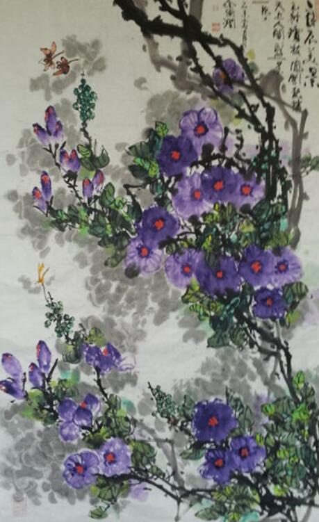 花鸟画在世界历史上,尤以中国画中最具特色,自五代黄筌之后,花鸟画大家辈出,各领风骚,自成体系。徐德润钟情于花鸟画近半个世纪之久,他把自己完全投放于墨肆陶染浸淫之中,从浩瀚的中华文化中汲取营养,从历代宗师的作品中凝练技法,用自己的眼睛和心灵去观察、去映照、去探索、去追求,张扬自己的激情和智慧,在艺坛上别出机杼地创造出了一片属于自己的艺术领地。其作品即涵有儒、法、道各家文化底蕴和禅宗神韵,又保持自然物象的生动活力和质感,焕发出一股热烈、蓬勃向上的强烈时代感。古梅、苍松、丹柿、牡丹、荷花、藤萝、鹰、雀、蝶、蜂,虽然姿态不同,但都具有刚的个性,柔的容颜,雅的风彩。一笔之中,阴阳共生,虚实相映,在娴雅中藏雄强之气,使挺拔刚劲枝头充满雅气与生机。与吾解其之艺只能道此一二而已。