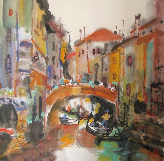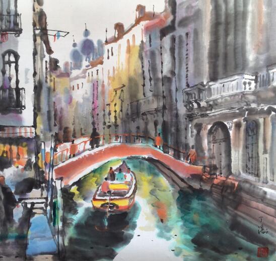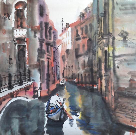 《威尼斯》 68×67cm 现在,我已有很多印章,其中一方“我画我画”最为喜爱,常用在画上方做一闲章,可自嘲,也可自勉。
