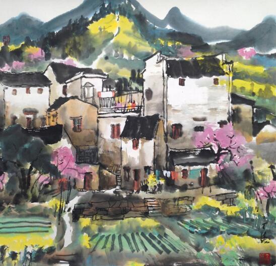 《渔梁》 68×67cm 《山村》 68×67cm |