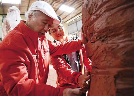 潘鹤为《冼星海雕塑》签名 摄影 张伟樾 榄核镇是广州南沙新区的一个革命老区,人民音乐家冼星海的故里,具有得天独厚的人文资源、优美精致的岭南水乡资源。 2015年4月29日,南沙开发区管委会和羊城晚报报业集团(以下简称羊晚集团)签署战略合作框架协议:共同运营文创产业,联合打造国际智库,携手建设“国际文化的交流平台、国内文化的输出窗口、岭南文化的特色名片”。其中,“建设星海文化,打造星海文化品牌”是这一战略合作的重点。 2015年10月30日,在广州榄核镇举行了羊晚星海艺术基地揭牌仪式暨百名艺术家走进星海故里活动。这是南沙和羊晚集团战略合作的第一个落地子项目,该基地在打造南沙、广东对外开放的文化交流大平台方面,开了一个示范窗口。 2015年11月2日,羊晚集团和榄核镇政府签署战略合作框架协议,共同筹划把榄核镇打造成有独特文化品味的文创小镇,“星海艺术产业园”也签约落地。疍民文化研究基地、香云纱文化研究中心揭牌,星海故里微电影正式开机。 2016年1月,冼星海故里——榄核镇政府拟在星海文化广场建立星海雕塑,并委托羊晚集团物色合适的雕塑家。 2016年2月,羊晚集团说服93岁高龄的中国雕塑界泰斗潘鹤出山,与著名雕塑家潘放联手创作冼星海雕塑。 2016年3月,榄核镇政府邀请羊晚集团代表与雕塑家潘放,开了首次碰头会,并实地考察冼星海童年生活过的湴湄村以及星海博物馆、星海文化广场,搜集创作素材。 2016年4月,潘鹤与潘放联手创作的冼星海雕塑手稿及泥稿大样完成。 2016年7月,榄核镇政府与羊晚集团联合主办冼星海雕塑创作论证会,专家一致认为:潘鹤先生是中国雕塑界的泰斗,其作品将成为南沙区新的文化名片,为文创注入新的能量,雕像将成为南沙区的新地标。随着时间推移,其经济价值、文化价值、美学价值将不断提升,作品将成为一座影响力大、超越时代的经典作品。 2016年8月,榄核镇政府与羊晚集团签约,正式委托潘鹤与潘放先生联合创作冼星海雕塑,并计划于12月30日在榄核星海文化广场落成。 2016年9月-10月,榄核镇与羊晚集团及雕塑家潘鹤、潘放先生反复沟通、统一意见后,确定将冼星海雕塑初稿放大。 2016年11月中旬,羊晚集团代表与潘放先生携冼星海雕塑创作说明书飞赴杭州,面见冼星海女儿冼妮娜女士,征求意见。冼妮娜女士亲笔写下评语:此作形、神还较好,潘鹤、潘放先生联合创作的冼星海雕塑从创意到造型都不错。 2016年11月24日,潘鹤与潘放先生分别在2.7米高的冼星海雕塑泥塑上签名。 2016年11月28日,冼星海泥塑稿进铜厂翻模铸铜。 2016年12月23日,冼星海雕像基座进场安装完毕。 2016年12月28日,冼星海雕像铜像安装完毕。 2016年12月30日,榄核镇政府将举行隆重的冼星海雕塑落成仪式。 只见斗志昂扬的冼星海高举指挥棒迎风而立,脚下是巍巍太行涛涛黄河,“风在吼 马在叫 黄河在咆哮 黄河在咆哮。”《黄河大合唱》如排山倒海般此起彼伏、久久回荡。这座矗立在星海故里的雕塑既是一座星海的纪念塑像,更是一座鼓舞中华民族奋发进取的精神丰碑! 那片星的海! 【赵旭虹】 |