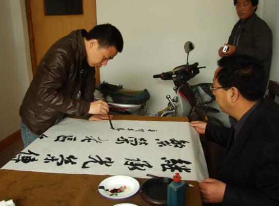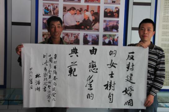 刘巧儿旧居题词(二) 在南梁革命根据地荔园堡题词王林虎主任陪同 【名家点评林浩湖】 林浩湖绘画的综合素养很高,书法、篆刻、山水、花鸟、诗词无一不涉及,因少年便有书名、是我这批学生当中最年轻有为其中之一。 ——龙瑞(原国家画院院长) 在这笔墨技法被忽视的时代里,林浩湖仍然坚持纯绘画的正规传统精神,他对陈规没有固有的兴趣,但他摒弃了传统绘画的视觉习惯性,“龙卷风”的书面效果显然不是一个焦点或散点所能主宰的,而是自由自在地向外流动、冲击、破坏,这种外张性很强的风范,只有通过林浩湖画风做最具体的坦露。我以为这意义要大于画本身。 “人在人生旅途上是一种跋涉---”林浩湖的“龙卷风”创造既是一种跋涉,在艺术界林浩湖跨出了意义重大的一步。 ——石齐(中国著名国画大家)