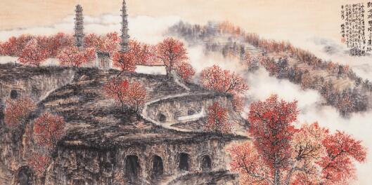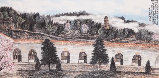 豹子川双塔寺 看林浩湖的山水画吸收了传统的高古清峻,以气韵为旨,格调清新幽深,水墨葱郁,烟雲风光,溢于画面,于笔墨间抒放胸臆,重山復水,师法天章,自成一派,是返朴归真的充分展示与辛勤求索的结果。 中国美术评论大家——贾德江