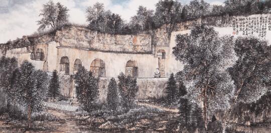 原中央第一党校旧址 看林浩湖的画,觉得他是个有佛性的人,故而他的画,若佛菩萨大智慧关照诸法,实相理体无不佳妙,一方面,显现出了大自然澄明无蔽的意义世界的本性恒常,另一方面,则构成了一片迷人的震动人魂魄的艺术世界,确实是有景、有神、有韵、有情、有趣、所以,可以说,确实“依于仁、志于道、游于艺”前提下的观之令人倍觉神清气爽,心旷神怡的难得上乘佳作。 中国美术评论家——傅京生 復古遐思,山势峻秀,浩荡湖水,无边林木。 中国著名国画大家——范扬