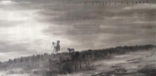 晚归136x68cm 2014年 而“归乎用笔”的提出则强调了“用笔”是“传神”所必须的载体之重要性。中国的人物画表现,主要是以线为造型手段,不论是工笔画的中锋用笔,还是写意画的“抑扬顿挫”、“快慢疾徐”之笔性、笔意的表达,都强调了笔力和功夫,也就是用笔的质量。运动中的线条所表达出来的美感是笔意——即以书法的用笔形式写出来的,这种写,不仅仅是用笔的变化,还体现在用笔的速度及墨韵和纸质的结合上。在这种写的酣畅、快意表达的同时,还要兼顾对物象恰倒好处的把握,委实是一件不易的事。说人物画难,难就难在既要把握形似与神韵,又要兼顾用笔用墨的变化。