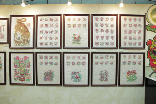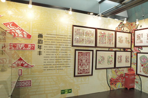 “画韵年丰”展区展出的则是河北省著名的武强年画作品。这一极具乡土气息和地方特色的民间乡土艺术形式,设色鲜亮,线刻粗犷,在过年期间尤其能够营造浓厚的喜庆氛围,表达人民对来年生活的美好期望。武强年画的诞生,需要复杂的木板套色工序方可完成,此次除展示故事戏曲、吉祥喜庆、门画、窗花等不同类别共计24组件年画佳作外,还在互动区准备了猴子年画制板一套,广大市民可亲身体验年画制作工艺,在猴年到来之际用一张DIY年画装点自己的生活。