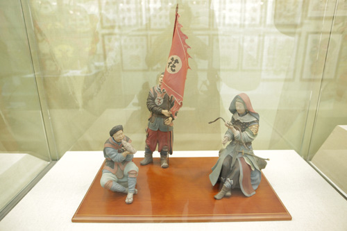 “雕形塑意”展区展出的是天津“泥人张”泥塑世家的代表作。“泥人张”自清道光年间创办,经历六代传承,至今已有200余年历史。与大家熟悉的喜庆卡通的泥塑形象不同,此次展品均为达摩、罗汉、关公、钟馗等大型人物塑像,作品色彩纯雅,线条流畅,技艺精湛,意境深远,每一件都是形神兼备的艺术珍品,蕴含了“泥人张”传人对佛教、民俗、古典文学的理解和感悟。