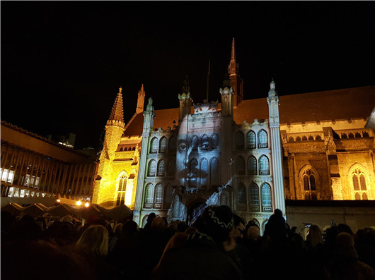 伦敦市政厅建筑上的莎士比亚投影(摄影:白天行) 人民网伦敦3月9日电 (白天行)2016年是莎士比亚逝世400周年。近日,伦敦金融城与市政图书馆(Guildhall Library )和市政厅音乐及戏剧学院(Guildhall School of Music & Drama )合作,以市政厅古老的建筑为背景,使用灯光、音响、3D投影技术等形式为观众讲述关于莎士比亚的故事。 伦敦金融城文化图书馆及遗产委员会主席Vivienne Littlechild说,威廉·莎士比亚是伦敦最著名的市民之一,伦敦金融城确实应该纪念他逝世400周年,庆祝他不朽的遗产。 莎士比亚是英国文学史上最杰出的戏剧家,也是全世界最卓越的文学家之一。莎士比亚戏剧的表演次数远远超过其他任何戏剧家的作品。 |