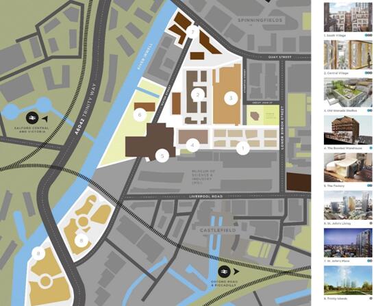 临水而居的空中花园, 曼城市中心新地标 St. John’s Place是一个由四幢大楼组成的独立项目,位于St. John’s社区北大门处,围绕码头街(Quay Street),紧邻斯宾尼菲尔德。由于场地居于曼彻斯特与索福特之间,因此St. John’s Place的设计旨在创造一种建筑理念,将52层高的大厦置于项目中央,可从位于码头街另一端的本市公民中心(City’s Civic Core)一览无余。