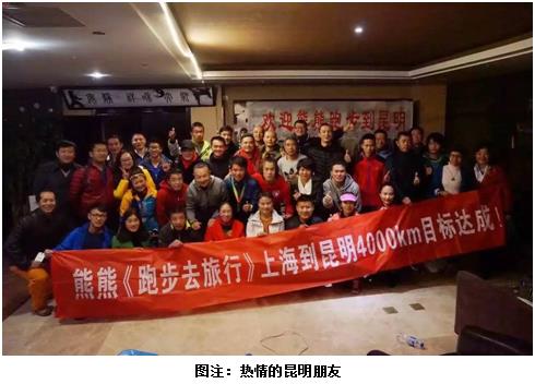 最后一站昆明,上海的朋友专程飞到春城,用双脚来支持熊贤军,除了上海超马创始人Aris,还有十年前登顶世界七大洲最高峰、徒步过地球两级的探险家金飞豹。 “金飞豹大哥在昆明陪伴了我整整四五天,安排好了一切。我还没见到过他时,感觉他的阅历就像巨人一样,但见面拥抱后,那种想象的距离突然就没有了。也许越成功的人就越谦卑。” 巨人的陪伴,让熊贤军越发坚定了梦想。