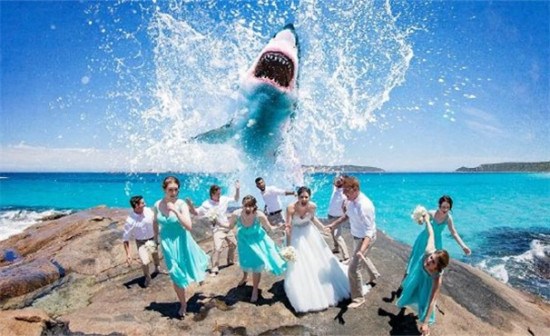 原标题:澳搞怪婚礼照出炉:大白鲨入境、悬崖边接吻(图)