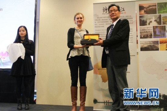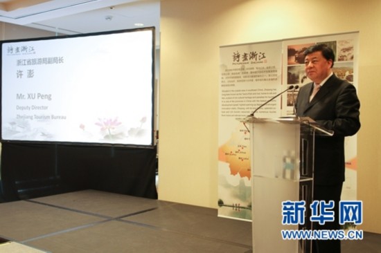 2月25日,在波兰首都华沙,浙江省旅游局负责人在以“诗画浙江”为主题的浙江省旅游推介会上发言。新华网记者 陈序摄 |